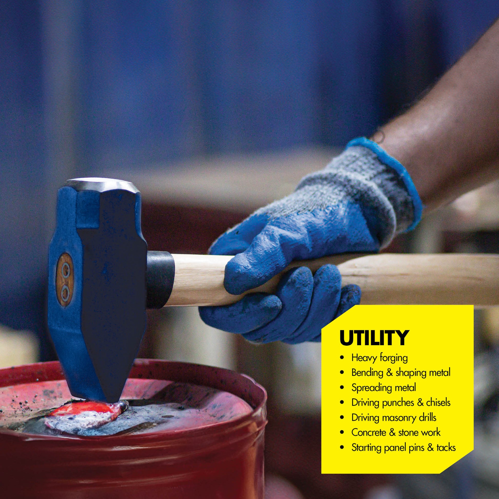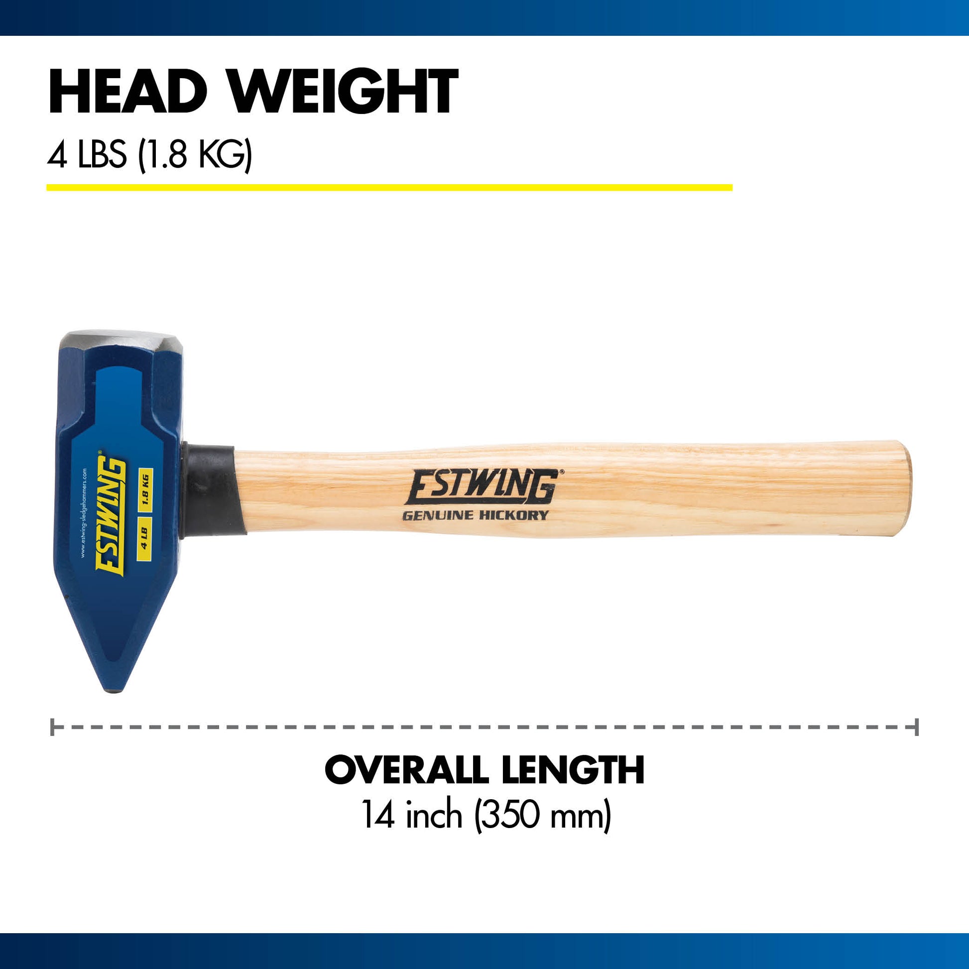 Designed as a cross peen hammer, the Estwing 4lb. Blacksmith Hammer with Hickory Wood Handle drives small nails and works in hard-to-reach places. The fully forged head is induction hardened up to 50-58 HRC and tempered for strength and durability. Both faces of the forged head are polished and beveled to prevent chipping. This hammer is used metalworkers, welders, contractors, and tradesmen for applications such as light metalworking and shaping.
